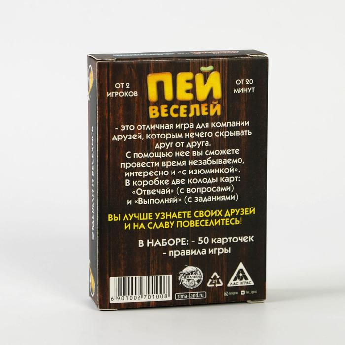 Купить игра для компании "пей веселей" 50 карт от 180 руб. с доставкой до пункта выдачи в Новоузенске. Интернет магазин ДекаМаркет. Оплата при получении.